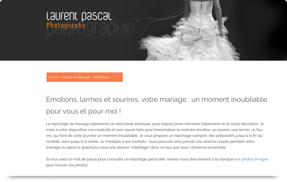 Réalisation du site internet pour Laurent PASCAL, photographe de mariage, photographe d'industrie, entreprise, future maman, scène, enfants, portraits, corporate à Pau (64)